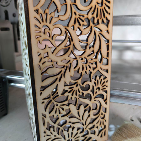 Misure: 15x15x25 cm di altezza. Lavorazione molto articolata in quanto i quattro lati sono stati tagliati a laser a tema floreale. Viene creato un coperchio ed una base che contiene un led da 10watt praticamente invisibile. Questa è stata verniciata di bianco opaco me con i colori ci si può veramente sbizzarrire.