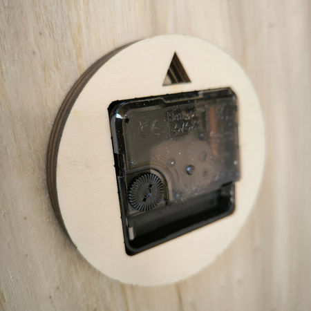 Il meccanismo applicato è stato inserito all'interno di un piccolo contenitore, anch'esso realizzato con una lavorazione separata, che include il foro per poter appendere l'orologio al muro.
